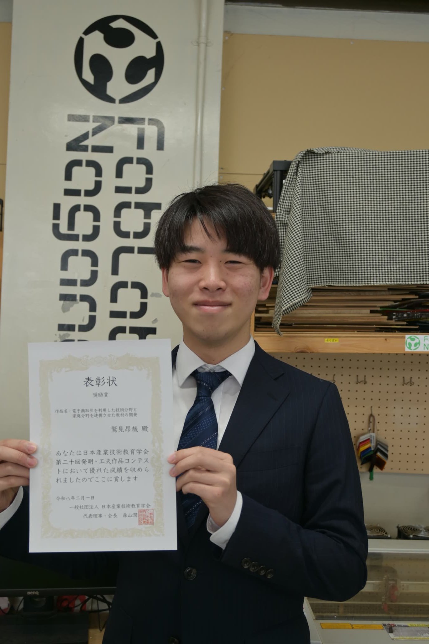 本研究室4年生の鷲見昂哉さんが日本産業技術教育学会の学生版発明・工夫コンテストで「EC体験Webアプリ教材」が奨励賞を受賞